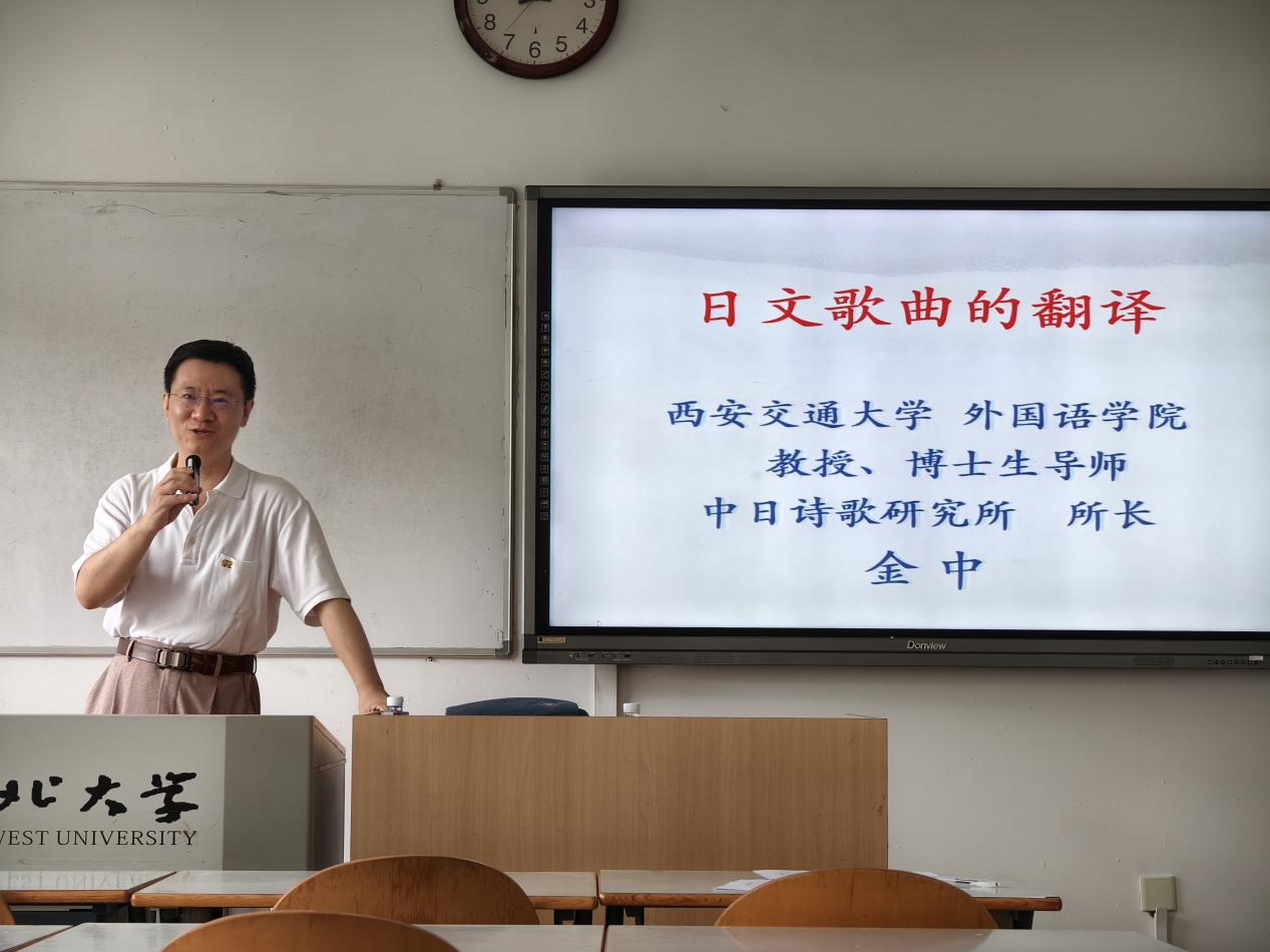 2025年7月10日上午,西安交通大学565net必赢客户端教授、博士生导师,中日诗歌研究所所长金中教授做客565net必赢客户端“名家讲座”,为师生作了题为“日本流行歌曲的翻译演唱”的讲座。讲座由杭正芳副教授主持。本次讲座亦是必赢官网实践周系列活动之一,日语专业大一至大三的同学们参与聆听了讲座。