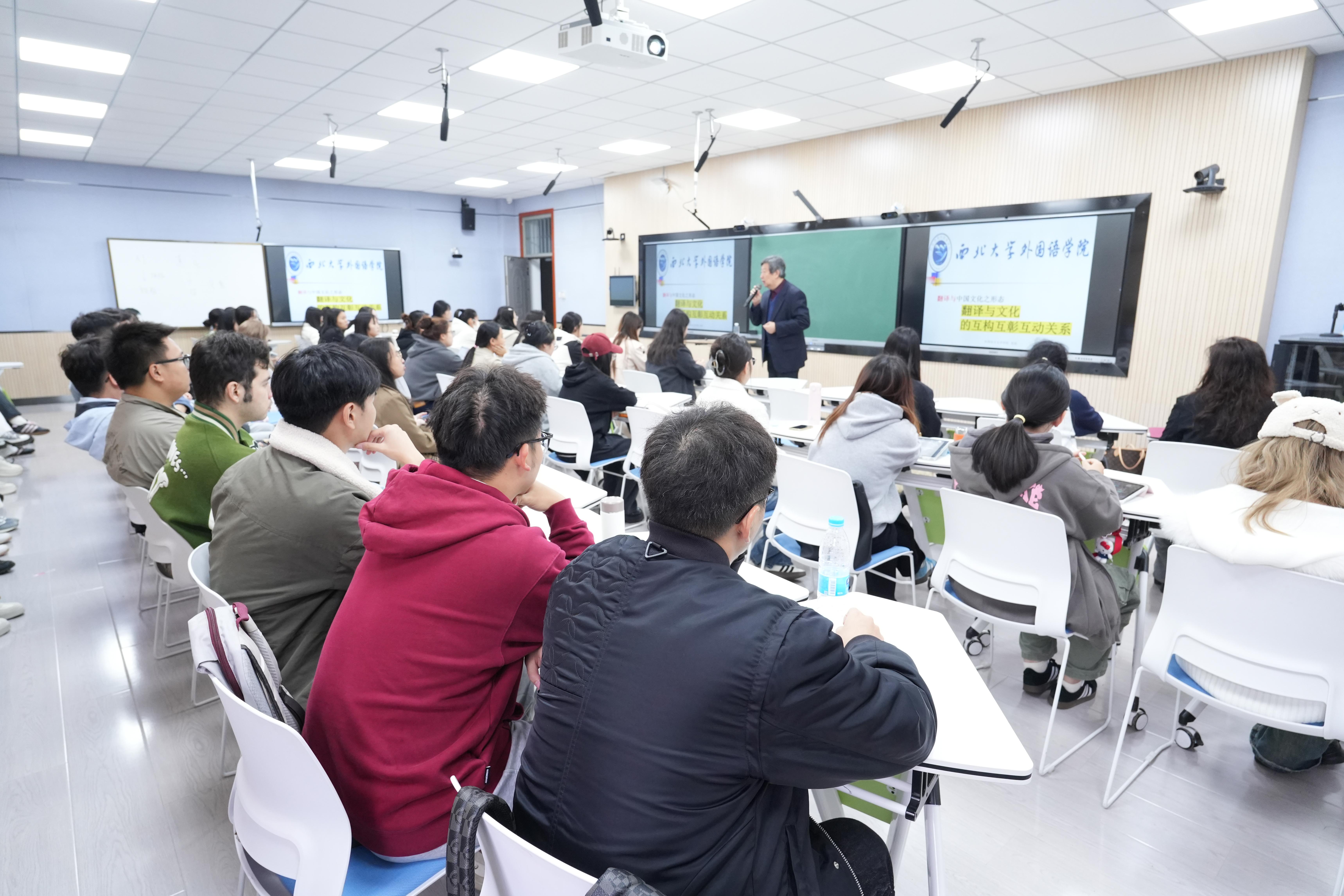 2025年10月29日下午,565net必赢客户端“名家讲座”特邀西北工业大学/北京师范大学张政教授,作了题为“千年西化翻译与中国文化”的学术报告。讲座由565net必赢客户端副院长苏蕊主持,吸引了众多师生参与。