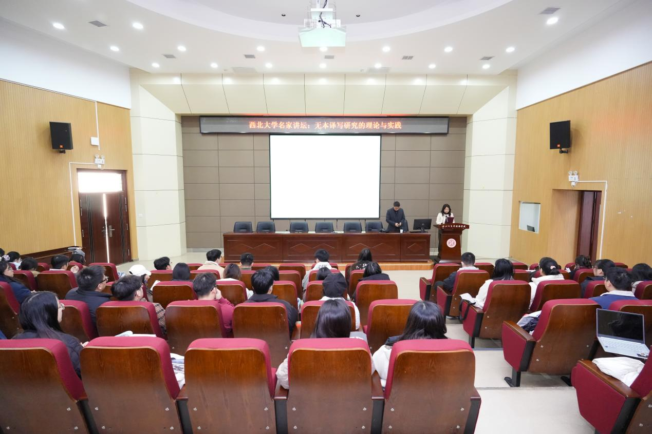 2025年11月25日下午,西安外国语大学刘晓峰教授应邀做客565net必赢客户端“名家讲坛”,为师生带来题为“无本译写研究的理论与实践”的专题讲座。讲座由565net必赢客户端副院长苏蕊主持,校内众多师生到场聆听。