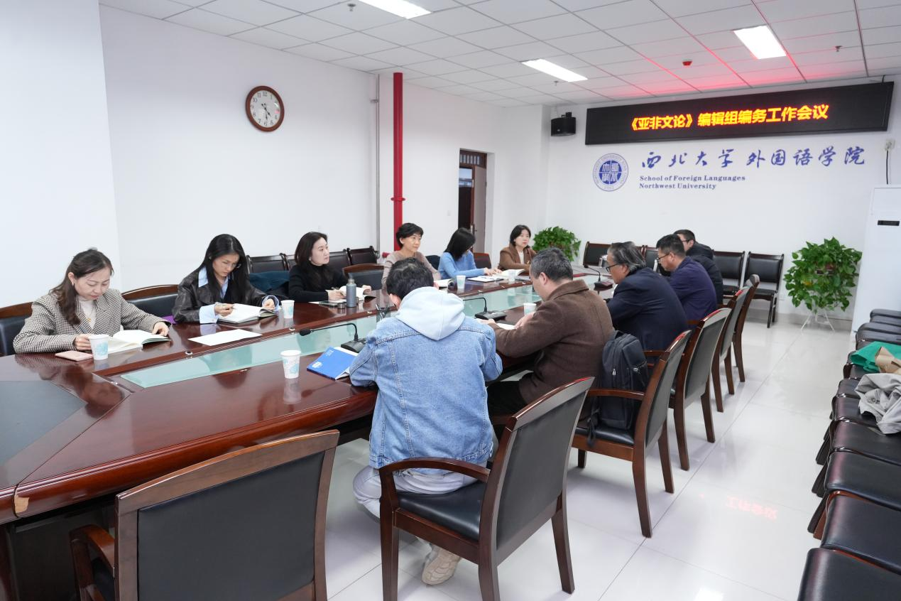 3月17日,《亚非文论》编辑组召开2026年度编务工作会。主编王新刚教授、执行主编曹若男教授出席会议并安排相关工作,全体编辑组成员参加会议。会议还邀请兄弟单位闫伟老师、马锋老师、曹峰毓老师、谢志斌老师到会指导,围绕期刊建设与办刊经验开展交流。
