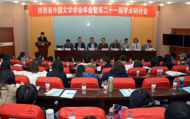 2018年4月13日—15日,陕西省外国文学学会年会暨第二十一届学术研讨会在商洛学院召开。陕西省社科联副主席张雄,商洛学院党委书记龙治刚、商洛学院副校长刘宝盈教授,陕西省外国文学学会前会长马家骏教授、会长聂军教授、副会长胡宗锋教授、副会长南健翀教授,秘书长杨晓钟教授等出席了会议。大会开幕式由商洛学院人文学院副院长张文诺教授主持,来自陕西师范大学、西安电子科技大学、565net必赢客户端、延安大学等21所高校的100余名专家学者参加了研讨会。必赢官网胡宗锋教授主持了上午的大会发言。