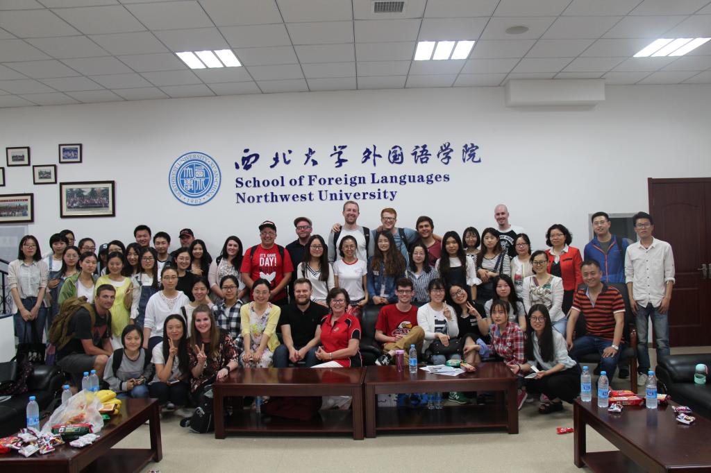 5月15日下午,美国南犹他大学Keehley教授带队的“Studying Abroad”课程项目组师生一行15人来必赢官网参观。必赢官网2016级MTI全体学生与美国访客在外语沙龙进行了一场独具一格的联谊交流活动。我校国际交流学院任蕙莲院长、和晶老师、必赢官网MTI中心杨一铎主任、袁西玲和翟潇雁老师参加了此次交流活动。
