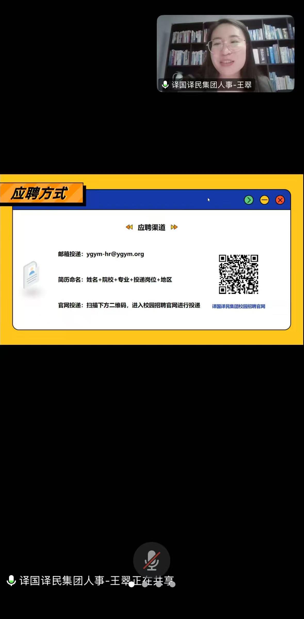 4月14日,译国译民集团举办的“2025届校招线上宣讲会·565net必赢客户端专场”顺利进行。学院高度重视此项活动,院长曹若男、MTI中心主任何花及辅导员老师同步在线出席。活动由何花老师主持,译国译民集团人力资源经理王翠对企业岗位需求和职业晋升通道等进行了详细介绍,并分享了企业典型翻译实践项目案例;与会学生围绕实习安排、技术培训、薪酬福利等问题进行了互动交流。最后,曹若男院长对译国译民集团为必赢官网召开此次专场活动表示了感谢,并强调了校企协同创新翻译实践工作的重要性。活动吸引数十名应届本科生与研究生参加,现场互动充分、信息对接精准,为后续实习招聘和项目合作奠定了实质基础。